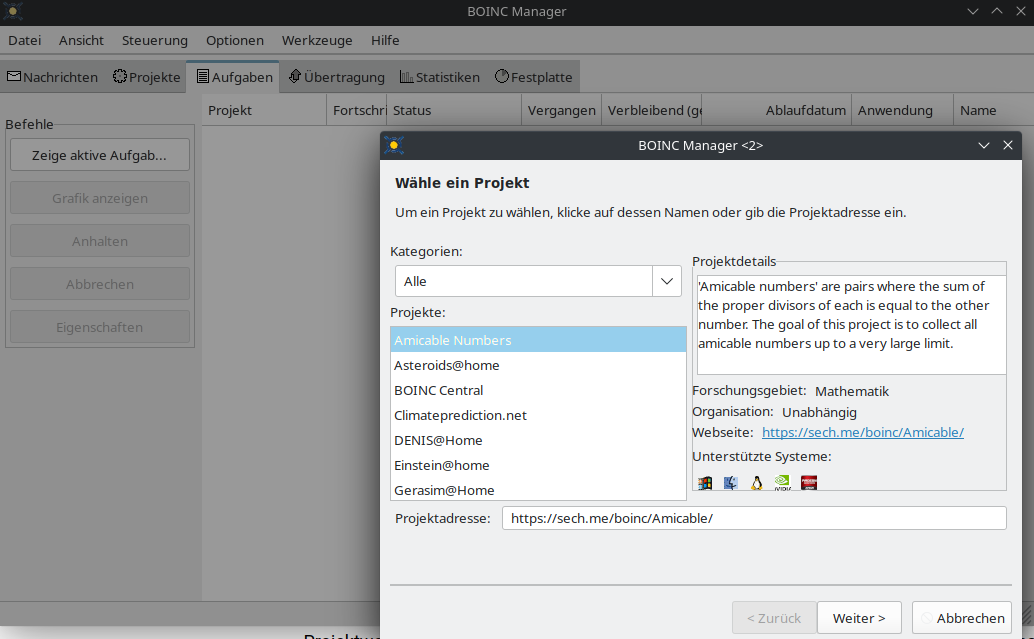 Um Projekte wie Rosetta@home, Universe@home, Yoyo@home, DENIS@home und World Community Grid zu unterstützen, müssen Sie in der Regel folgende Schritte durchführen: